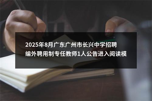 【2025年8月广东广州市长兴中学招聘编外聘用制专任教师1人公告进入阅读模式】相关岗位: