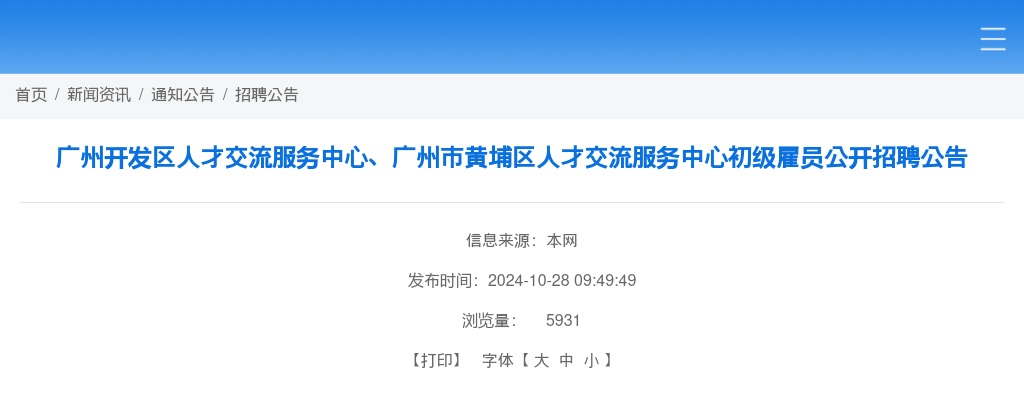 原标题:广州开发区人才交流服务中心、广州市黄埔区人才交流服务中心初级雇员公开招聘公告