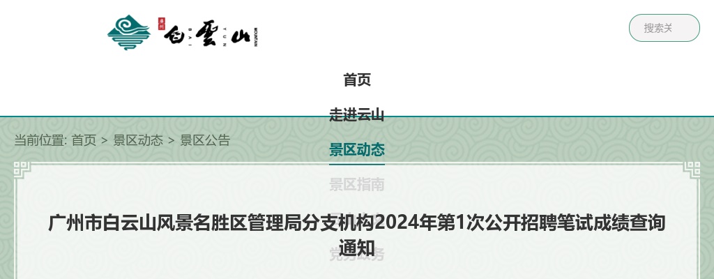 原标题:广州市白云山风景名胜区管理局分支机构2024年第1次公开招聘笔试成绩查询通知