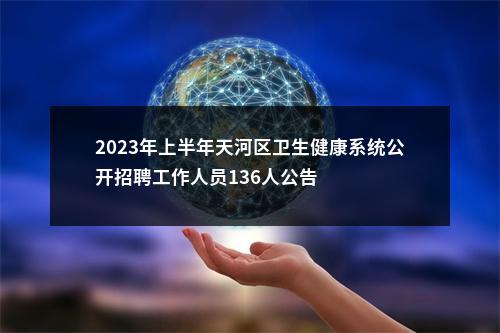 招聘专业技术人员136人。岗位详见《2023年上半年天河区卫生健康系统公开招聘专业技术人员职位表》(附件1)。