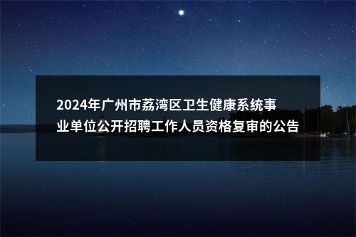 原标题:2024年广州市荔湾区卫生健康系统事业单位公开招聘工作人员资格复审的公告