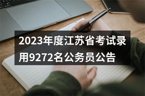 根据《中华人民共和国公务员法》、《公务员录用规定》、《江苏省公务员录用实施办法》和有关法律法规,江苏省公务员局将组织实施全省2023年度考试录用公务员工作。2023年度,全省各级机关和参照公务员法管理(以下简称参照管理)单位将考试录用9272名一级主任科员以下及其他相当职级层次的公务员和参照管理单位工作人员。现将有关事项公告如下。