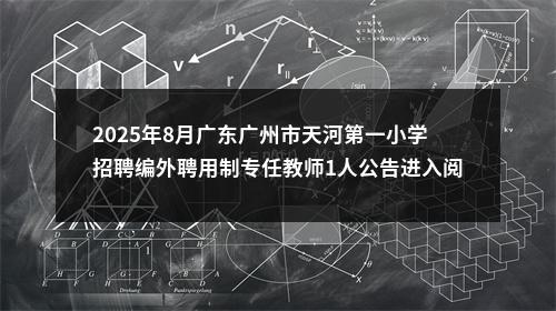 原标题:广州市天河第一小学2025年8月公开招聘编外聘用制专任教师公告