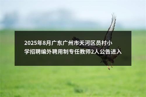 原标题:广州市天河区员村小学2025年8月公开招聘编外聘用制专任教师公告