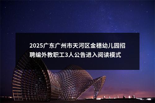 原标题:广州市天河区金穗幼儿园2025年11月公开招聘编外教职工公告