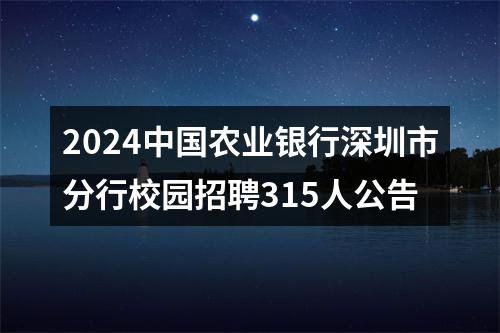 公告汇总 一、招聘需求 (315人) (一)分行本部管培生。培养储备分行本部相关岗位战略性业务骨干和经营管理人才,提供投资银行、金融市场、网络金融、私人银行、公司金融、个人金融等业务方向。录用人员入职后将先安排到基层营业网点进行为期1年的培养锻炼。 (二)分行本部基建工程项目管理岗。培养储备分行本部基础建设、工程管理等相关岗位业务骨干和管理人才,提供工程项目管理等发展方向。录用人员入职后将先安排到基层营业网点进行为期1年的培养锻炼。 (三)分行本部金融科技培养生。培养储备金融科技复合型人才和专家,提供软件开发、运行维护、安全管理、数据分析等业务方向。 (四)深圳各支行综合培养生。培养储备各级经营管理机构负责人和业务专家,提供综合营销、财务会计、风险控制、法律合规等业务方向。 (五)深圳各支行客户经理。培养储备各级经营管理机构负责人和营销专家,提供市场开发、业务拓展、客户维护、产品推广等业务方向。 (六)深圳各支行客服经理。培养储备内勤行长和运营专家,提供运营管理、结算操作等业务方向。原则上,在客服经理岗位序列工作服务期限不低于5年。 具体的岗位职责说明和要求请登录中国农业银行招聘网站(https://career.abchina.com.cn)查看。 二、招聘条件 (一)学历要求。 境内外院校2023年、2024年大学本科及以上学历毕业生,并应在2024年7月31日前毕业。其中,境内院校毕业生应取得毕业证、学位证,境外院校毕业生应取得毕业证及国家教育部留学服务中心的学历学位认证书、满足深圳市对境外留学人员就业落户条件要求。 (二)遵纪守法,诚实守信,品行端正,无不良记录。 (三)身心健康,具备良好的综合素质,较强的学习适应能力和团队协作精神。 (四)原则上,具备一定的外语沟通能力。 (五)符合监管部门关于银行业从业人员的有关要求,且符合我行亲属回避相关规定。 各岗位的工作职责、应聘条件和具体要求请登录中国农业银行招聘网站(https://career.abchina.com.cn)查看。 三、招聘流程 (一)在线注册并填写简历,投报岗位 (二)笔试 (三)面试 (四)体检 (五)录用签约 四、报名方式及时间等安排 (一)报名方式:应聘者请登录中国农业银行招聘网站(https://career.abchina.com.cn)或“中国农业银行人才招聘”微信公众号进行在线注册、填写简历、选择职位并投报简历。每名应聘者最多可投报2个岗位,如投报2个岗位,则其中1个必须是分行本部岗位。 (二)报名时间:2023年9月6日至2023年10月7日 五、注意事项 (一)应聘者应坚持诚信原则,对个人信息的完整性和真实性负责,不得弄虚作假。如与事实不符,我行有权取消其考试和录用资格,解除相关协议约定,后果由应聘者本人承担。 (二)我行招聘信息均通过中国农业银行招聘网站(https://career.abchina.com.cn)及“中国农业银行人才招聘”微信公众号发布,请广大应聘者予以关注,防止出现个人信息泄露等风险。 (三)我行从未成立或委托成立任何考试中心、命题中心等机构,从未编辑过任何中国农业银行应试参考资料,也从未向任何机构提供过招聘考试相关资料和信息。 (四)笔试、面试等后续安排及要求仅通知应聘者本人,请应聘者密切关注我行招聘网站公告和站内通知信。如应聘者的手机号码、邮箱等联系方式发生变更,务必及时登录招聘系统进行更新,以确保通信畅通。 (五)职位投报成功后再编辑“个人中心”-“我的简历”的内容将不会同步更新已投递完成的简历信息。如需修改,请在“我的投递”中取消申请后重新投报。 (六)通过电脑访问我行招聘网站时,建议使用谷歌、360、IE11以上版本浏览器。 (七)咨询方式:jobabcsz@126.com 中国农业银行深圳市分行 2023年9月 原标题:深圳市分行2024年度校园招聘公告 文章来源:https://career.abchina.com.cn/build/index.html#/RecruitmentNoticeDetails/10462185/99 【2024中国农业银行深圳市分行校园招聘315人公告】相关岗位:交流群 中国农业银行深圳市分行为中国农业银行直属分行,是网点分布广泛、业务品种齐全、综合实力强大的国有大型银行之一。作为农行系统内的转型发展先锋、创新孵化基地和城市业务标杆,深圳市分行牢牢把握深圳建设社会主义先行示范区和粤港澳大湾区的历史机遇,始终与深圳特区共成长,以创新为驱动,在智慧银行、数字化转型、普惠金融、投资银行、跨境业务、供应链金融等领域先行先试,拥有领先的市场地位、优质的客户基础、卓越的品牌价值,为员工提供广阔的成长平台和有市场竞争力的薪酬福利保障体系。为满足业务发展需要,深圳市分行现面向境内外高等院校诚聘各类优秀毕业生,热忱期待与您携手同行,共创辉煌!