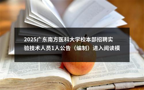 【2025广东南方医科大学校本部招聘实验技术人员1人公告(编制)进入阅读模式】相关岗位: