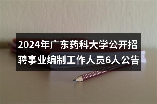 根据《事业单位人事管理条例》(国务院令第652号)、《广东省事业单位公开招聘人员办法》(粤府令第301号),结合实际用人需求,广东药科大学2024年公开招聘事业编制工作人员6名,现将有关事项公告如下: