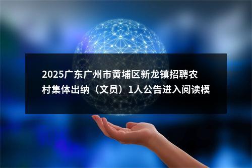 - 2025广东广州市黄埔区新龙镇招聘农村集体出纳(文员)1人公告进入阅读模式
