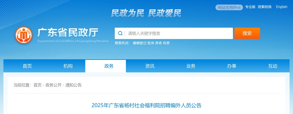 - 2025广东省杨村社会福利院招聘编外人员8人公告进入阅读模式