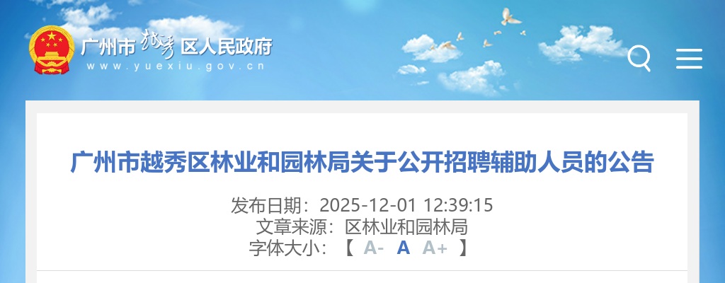【2025广东广州市越秀区林业和园林局招聘辅助人员1人公告进入阅读模式】相关岗位: