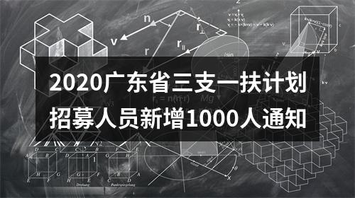 各地级以上市、县(市、区)人力资源和社会保障局、财政局:为落实《国务院办公厅关于应对新冠肺炎疫情影响强化稳就业举措的实施意见》(国办发〔2020〕6号)要求,根据省政府有关工作部署,今年我省新增招募1000名“三支一扶”人员。现将有关事项通知如下: